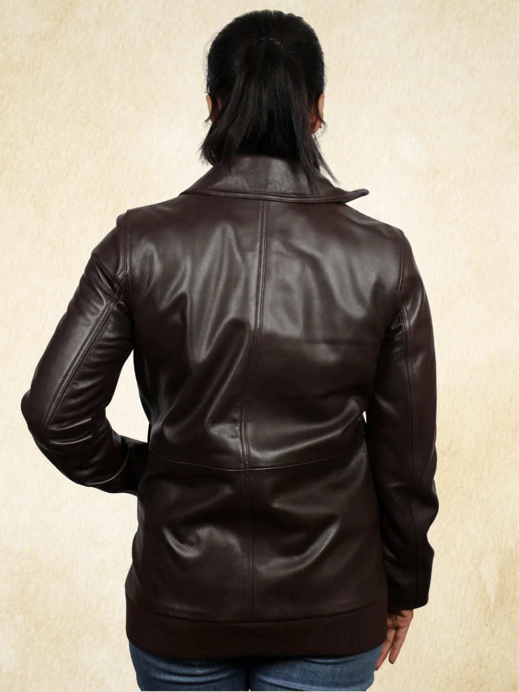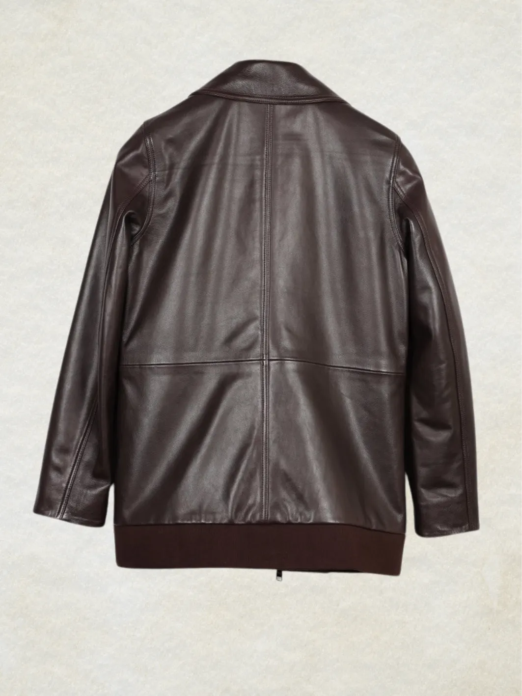 ANTEA Leather Bomber Long Jacket Brown