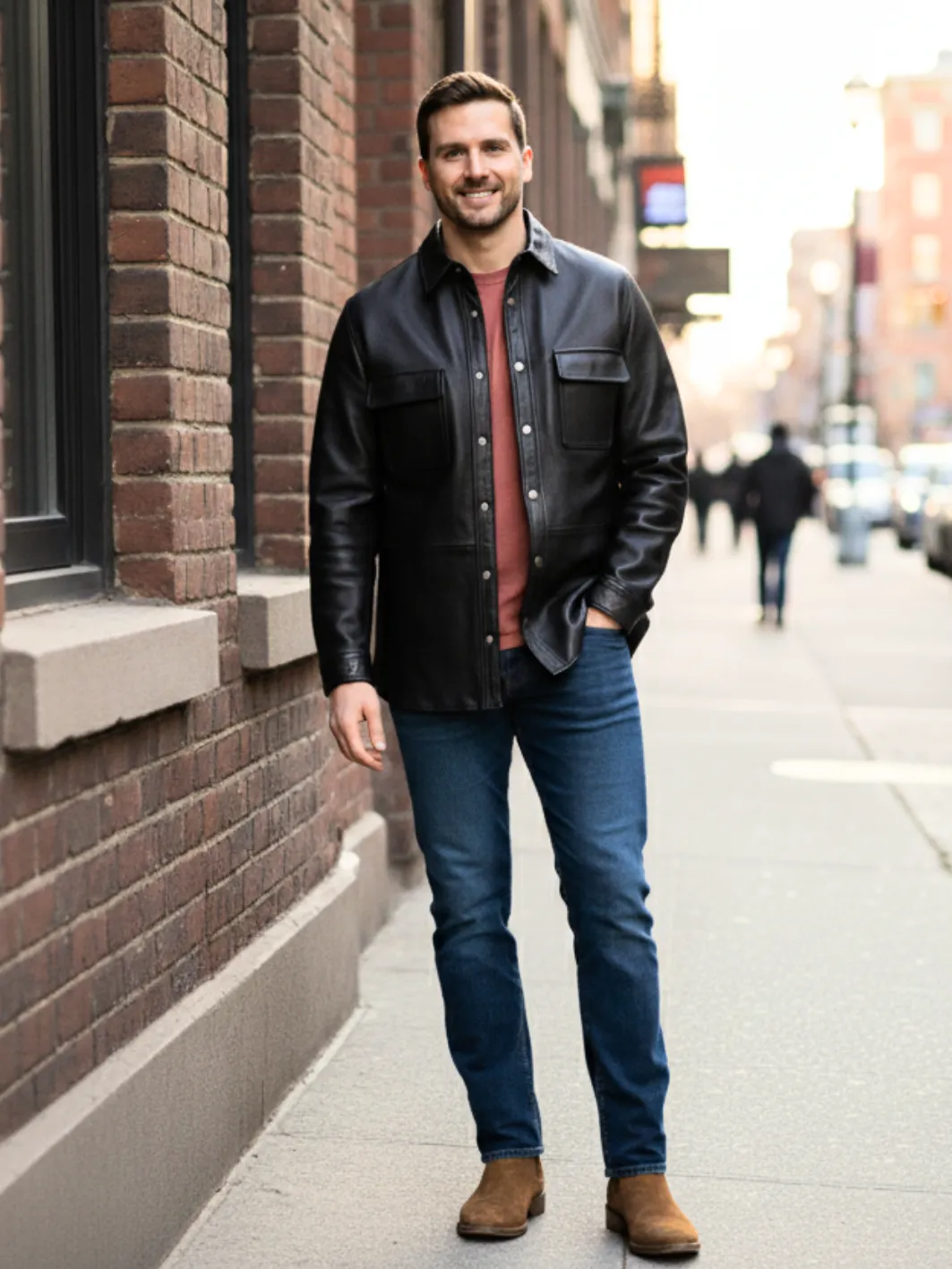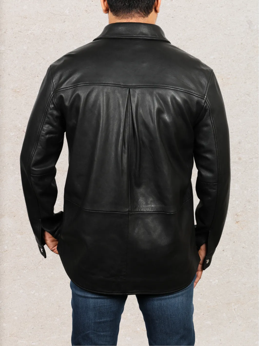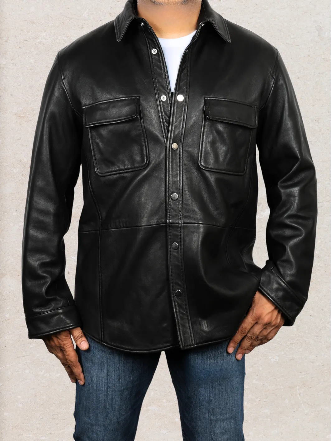 The perfect overshirt to wear with your Tees; made with soft leather, slightly thicker to beat the cold weather. Classic shirt with subtle design features. Go for a size bigger if you want a slightly oversized look