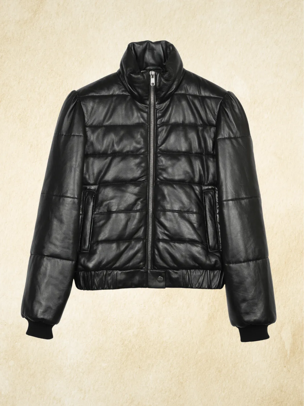 The warm leather jacket for winter's - Leather Quilted Puffer Jacket - with an elasticated leather hem, rib knit at cuffs and high collar with filler to keep you overall warm.