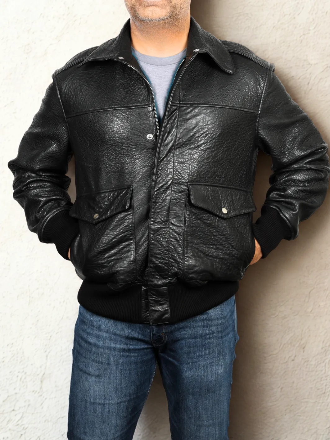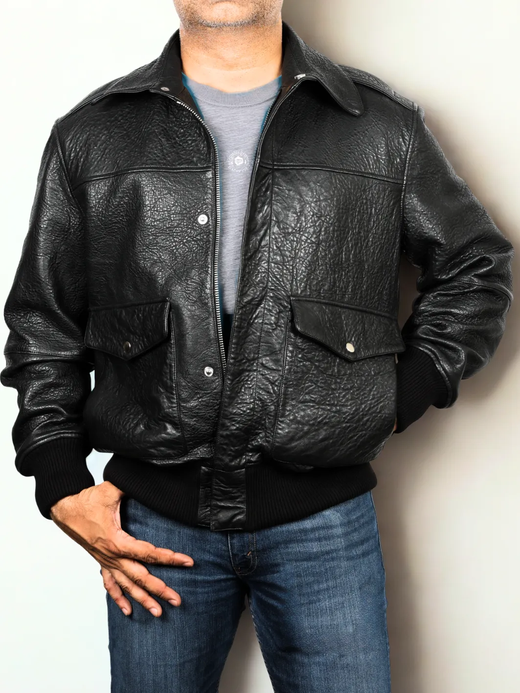 COSMOS Leather Pebbled Flight Jacket