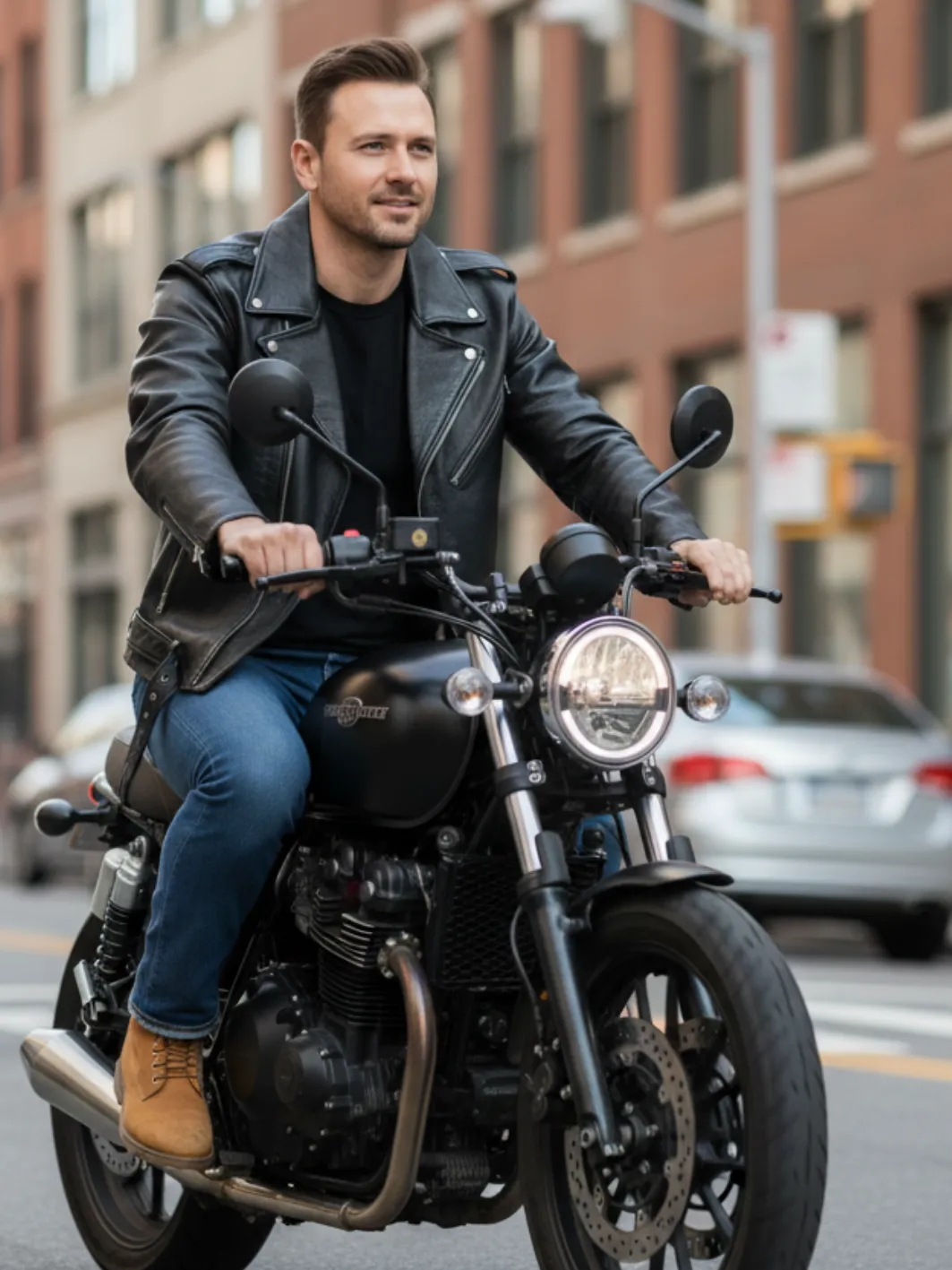 DEON Leather Men's Motorcycle Jacket Black