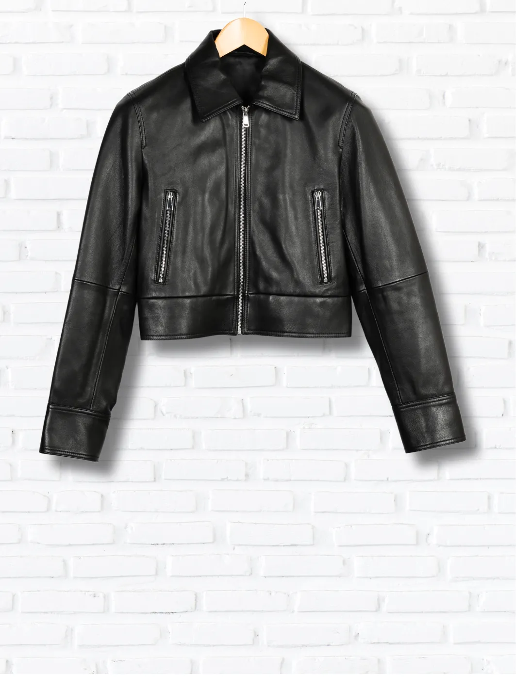 The leather used in this jacket is a by-product of the meat industry.