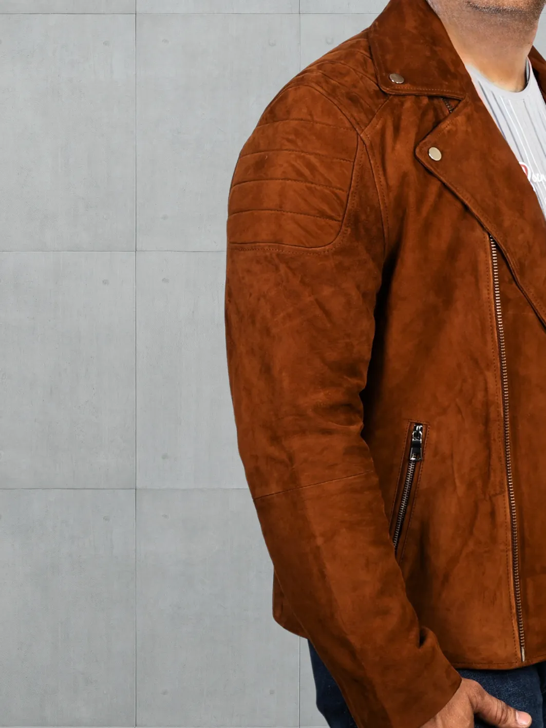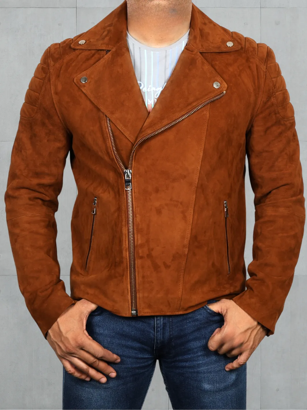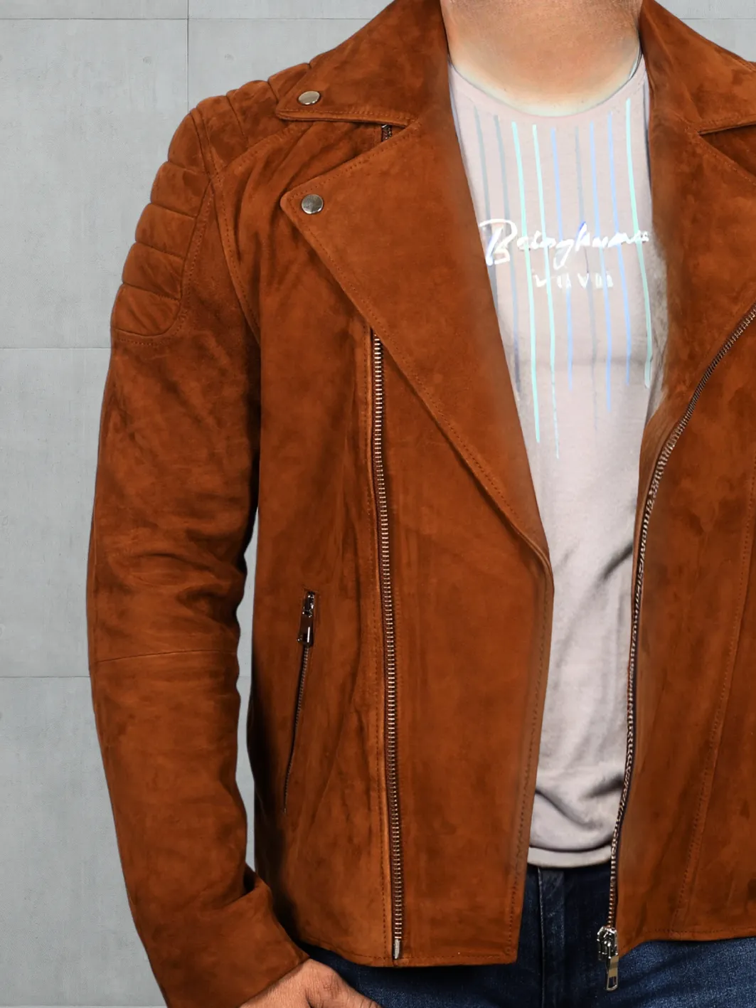 Suede Motorcycle Jacket - simple yet elegant. A classic design to always stay in fashion. Quilted panels enhances the overall look of the jacket.
