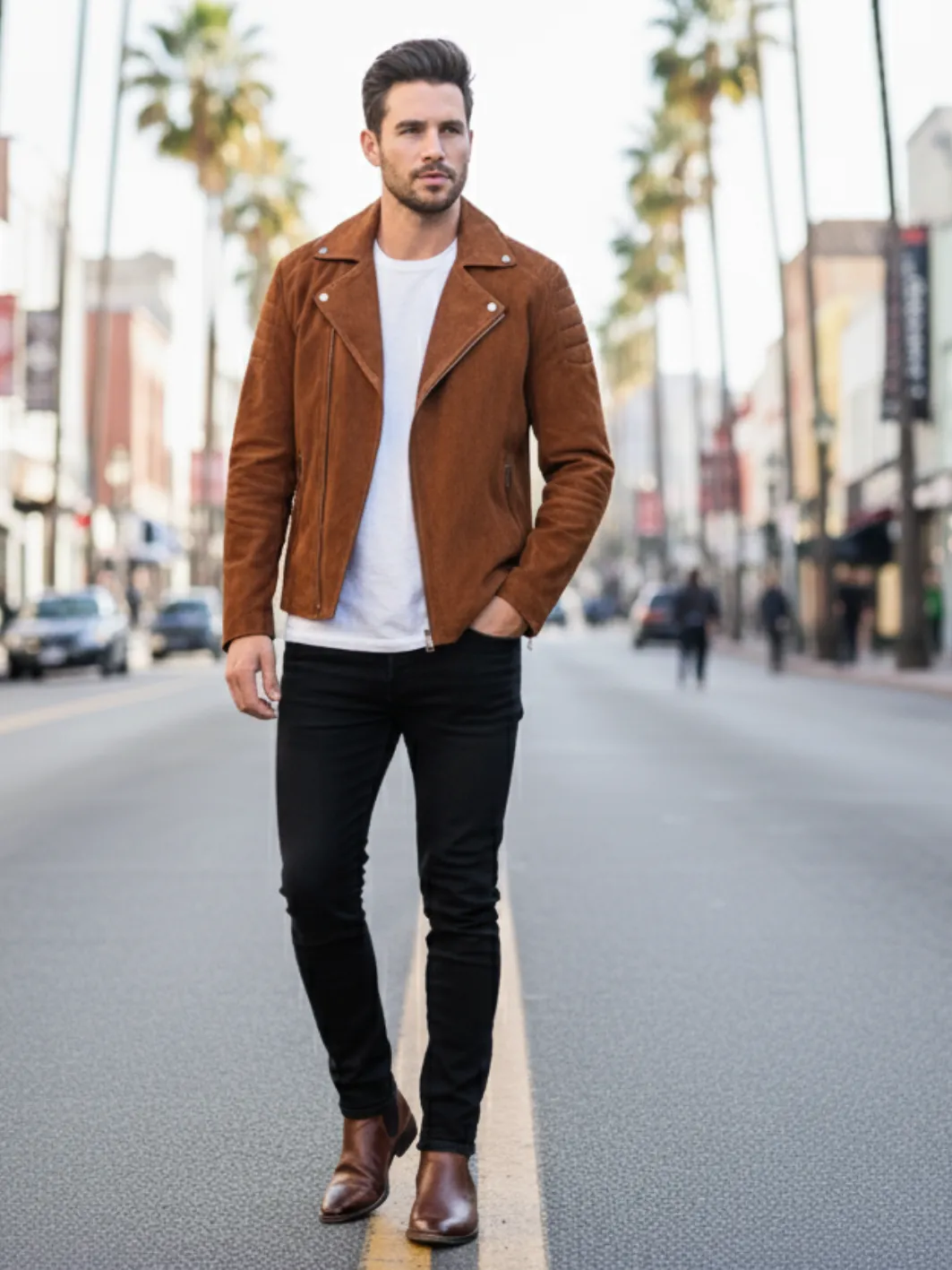 ICARUS Suede Men's Motorcycle Jacket Tawny