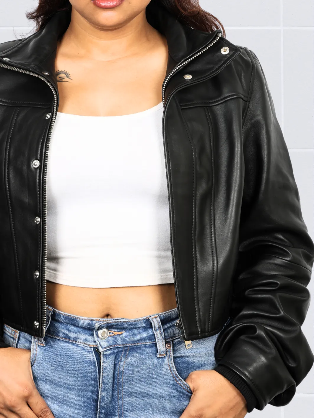 JOCASTA Leather Long Sleeve Cropped Jacket