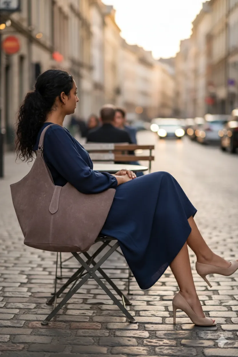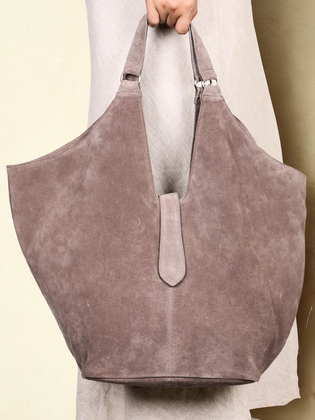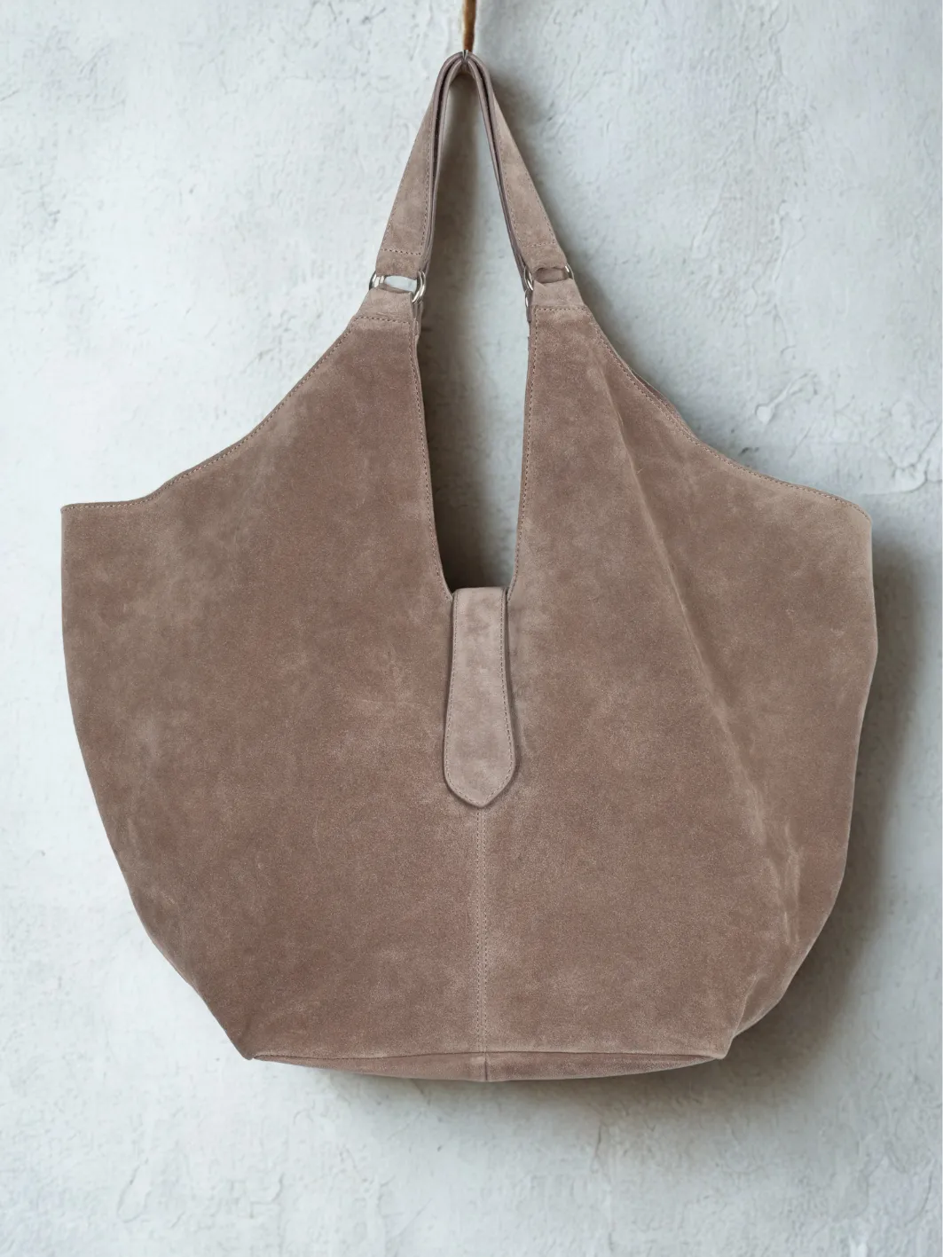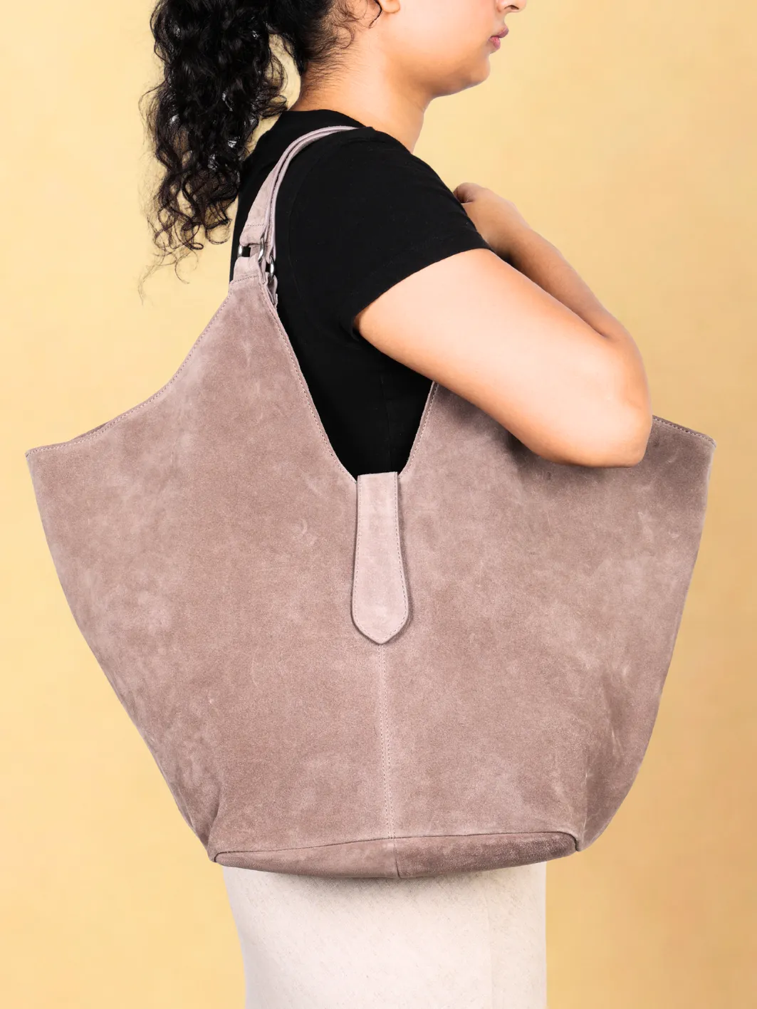 The always in style and need Tote Bag. The handle drop is good enough to hang on your shoulders or hand carry; it will look elegant in every way. The texture of the suede gives it that extra mileage. Your everyday companion.